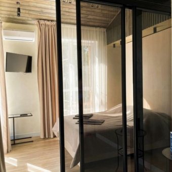 Пентхаус расположен в отдельном 3-х этажном корпусе. Большие окна, просторное ванна, зал с мягкими диванами, плазменный телевизор. Туалетные принадлежности, туалетная бумага, тапочки, зубные принадлежности, гель для душа, полотенце, постельное белье, махровые халаты.